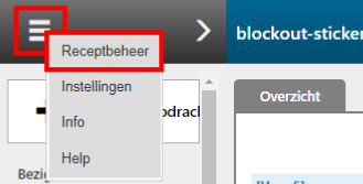 Klik op de knop [Menu] en klik op [Receptbeheer].