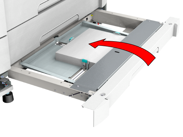 Wenn Sie neues Material nachfüllen möchten, bevor das Fach ganz leer ist, sollten Sie zuvor das gesamte noch enthaltene Druckmaterial aus dem Fach entnehmen. Dadurch vermeiden Sie, dass das noch im Fach enthaltene Material verschoben wird und einen Materialstau verursacht.
