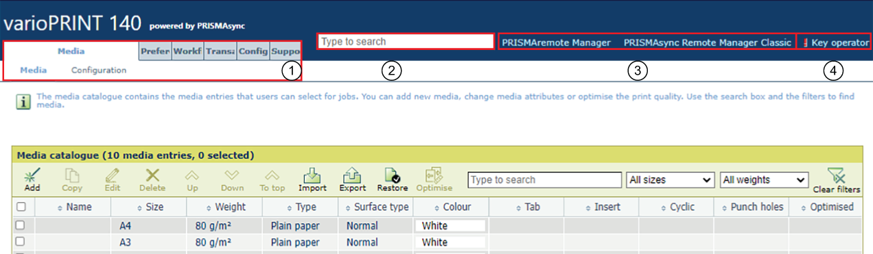 U kunt de varioPRINT 140 series op verschillende manieren gebruiken. U hebt de bediening van de varioPRINT 140 series snel onder de knie, of u de printer nu via het bedieningspaneel of extern via PRISMAremote Manager / PRISMAsync Remote Manager Classic gebruikt. Alle interfaces hebben hetzelfde ontwerp en uiterlijk.