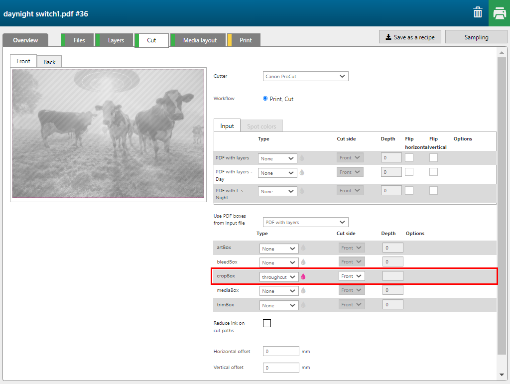 Die [CropBox] ist als [Durchschneiden] Pfad definiert.