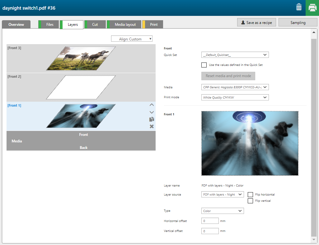 Die Rezeptur weist automatisch die richtigen Einstellungen pro Layer zu.