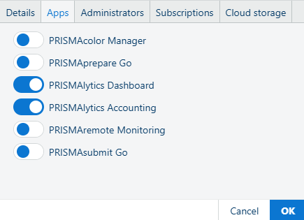 Utilize o painel [Aplicações] para conceder ou revogar o acesso a uma aplicação específica ao inquilino selecionado.