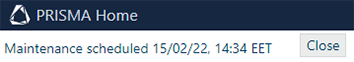 While a particular application is scheduled for maintenance, you will not be able to access it. The PRISMA Home portal itself, can be used in the regular way, as well as other applications which are not dependent on the one being under maintenance.