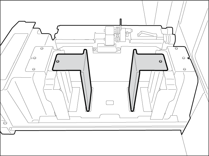 Jos haluat säätää yleispaperilokeron kokoa A5- tai Statement-koosta A4- tai Letter-kooksi, poista A5-paperin ohjauslevyt. Valitun yleispaperilokeron materiaalikoon säätäminen. Määritä uusi materiaali.