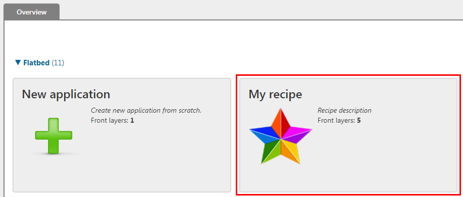使用 PRISMAguide XL 可以将应用保存为配方,以便将来使用。配方存储了需要以类似方式打印的新应用的特定设置。