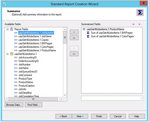 Az eljárás későbbi részében válassza ki, hogy a jelentésben melyik mezők jelenjenek meg. Ebben a lépésben a rendelkezésre álló mezők készletéből választhat.