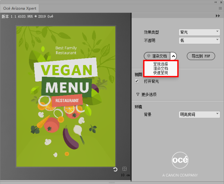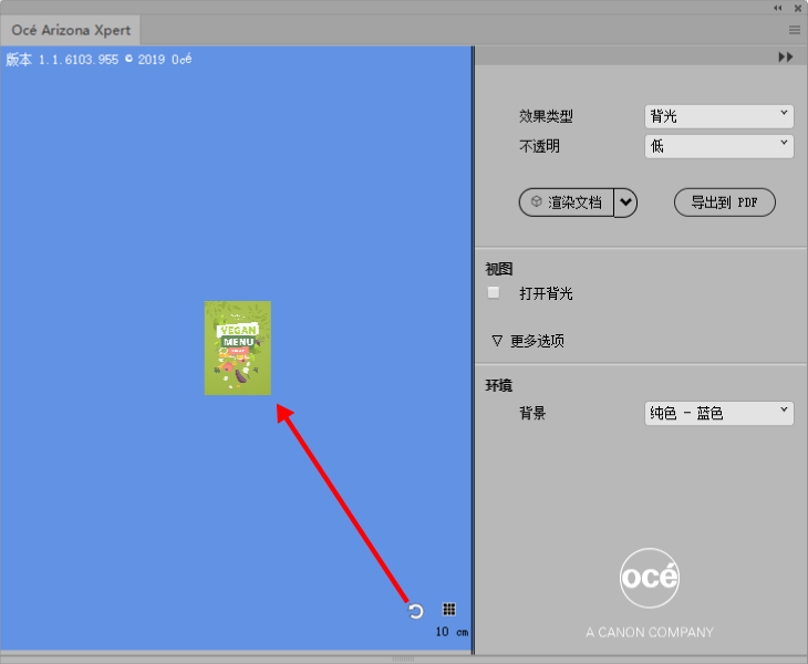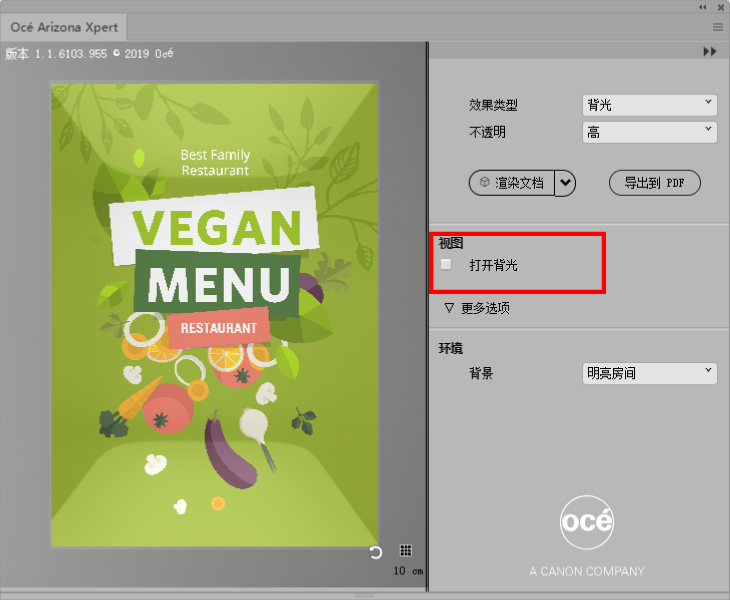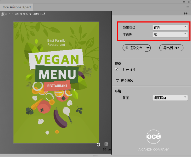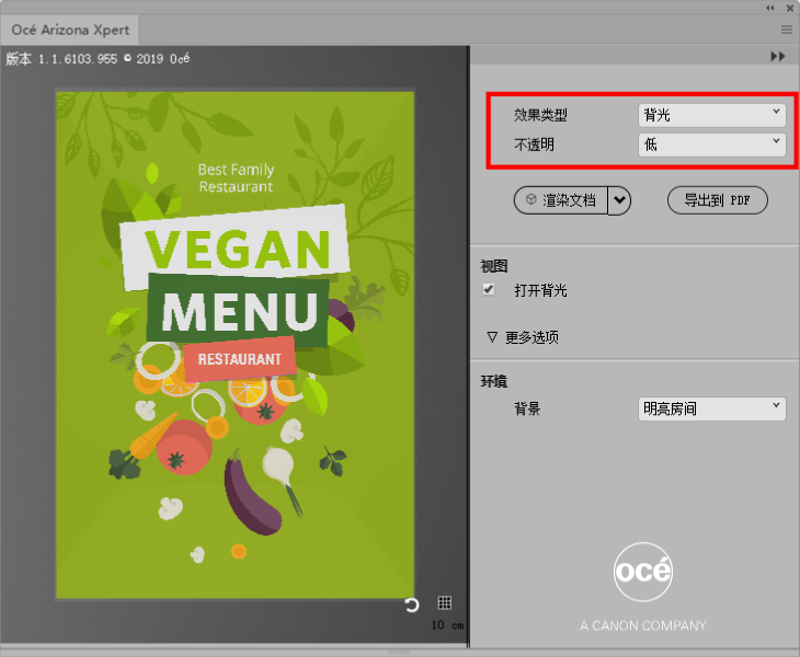 打开 Océ Arizona Xpert Extensions,然后选择 [效果类型] - [背光] 。