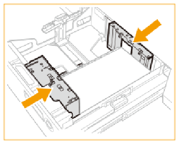 Schieben Sie die vordere und hintere Papierführung gegen den Materialstapel, und verriegeln Sie den Hebel. |