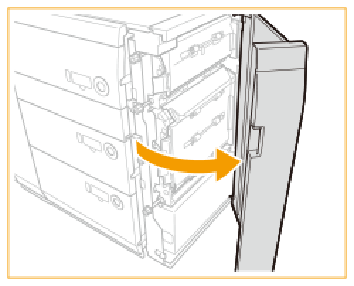 Die Registerblattpapierführung ist am Papiermodul befestigt (POD Deck-E ). Sie müssen die Registerblattpapierführung abnehmen. Vordere Abdeckung des Papiermoduls öffnen. |