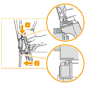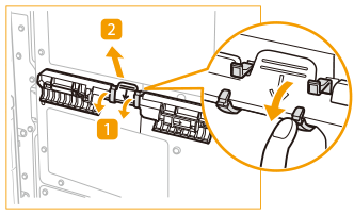 Achten Sie darauf, die Registerblattpapierführung wieder in ihre Halterung zu legen, um einen Papierstau zu vermeiden.