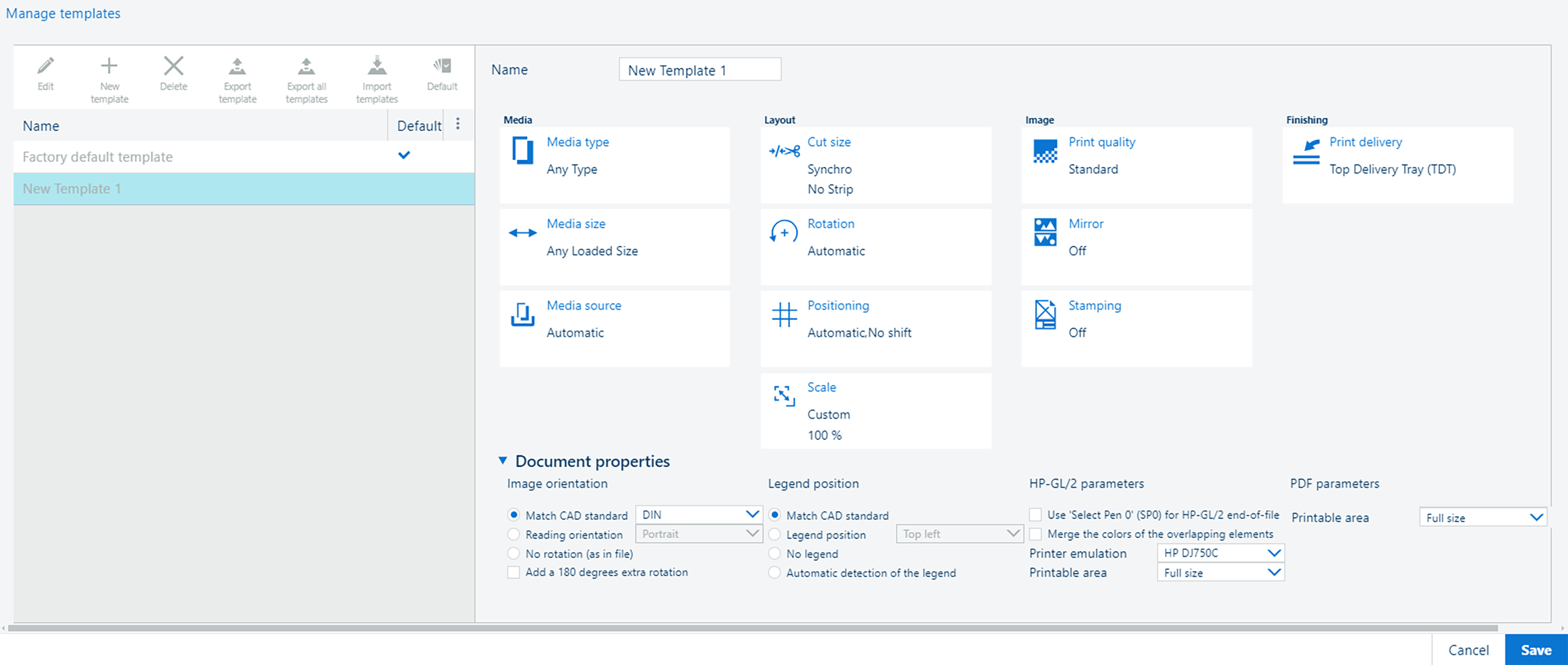 Malli on nyt käytettävissä avattavassa malliluettelossa. Voit käyttää sitä töiden luomiseen tai voit asettaa sen oletusmalliksi. Jos haluat lisätietoja, katso Mallien hallinta.