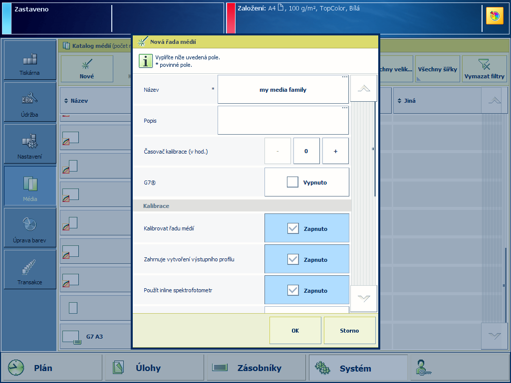 Určení možností kalibrace rodiny médií a vytvoření výstupního profiluProveďte kalibraci tiskárny.