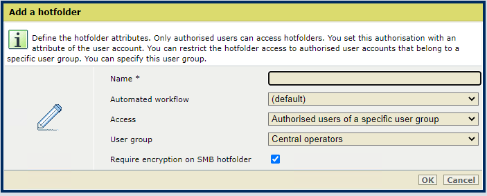 Introduza um nome para uma hotfolder.