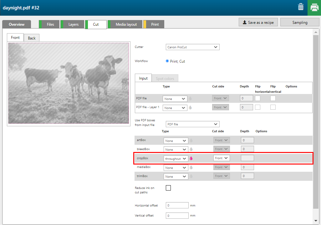 Die [CropBox] ist als [Durchschneiden] Pfad definiert.
