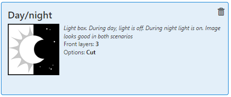 Met het recept [Dag/nacht] kunt u een toepassing voor een lichtbak maken. Overdag is het licht uit. Gedurende de nacht is het licht aan.