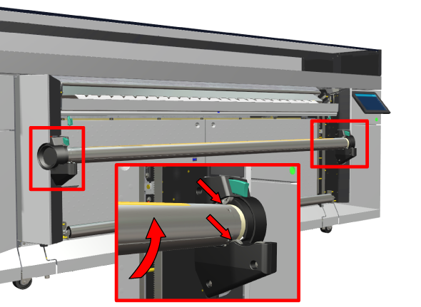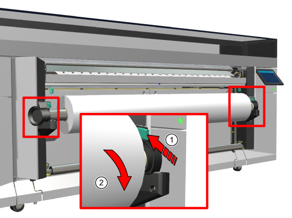 若要收取打印输出,您必须从卷筒中卸载收紧介质纸卷。