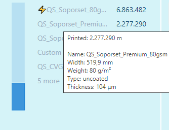 Meters afgedruktPlaats de muisaanwijzer op de naam van het materiaal voor meer informatie over de eigenschappen van het materiaal. De materiaaleigenschappen die hier worden weergegeven, verschillen per printer.