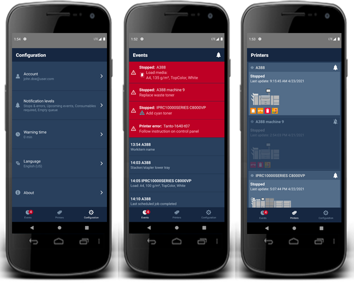Aplikace PRISMAremote Monitoring poskytuje hlavní obsluze informace o tiskové produkci. I na dálku.