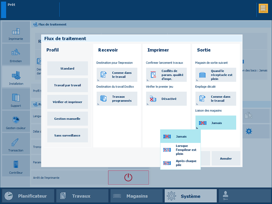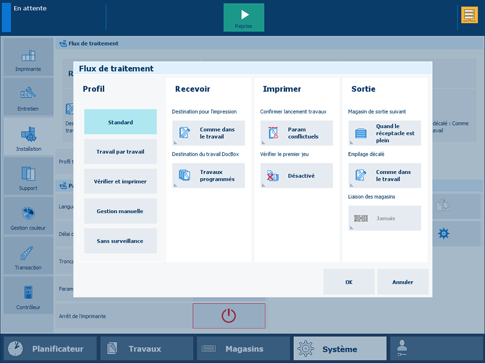 L'imprimante fournit des profils de traitement vous permettant de gérer votre charge de travail à partir du panneau de commande.