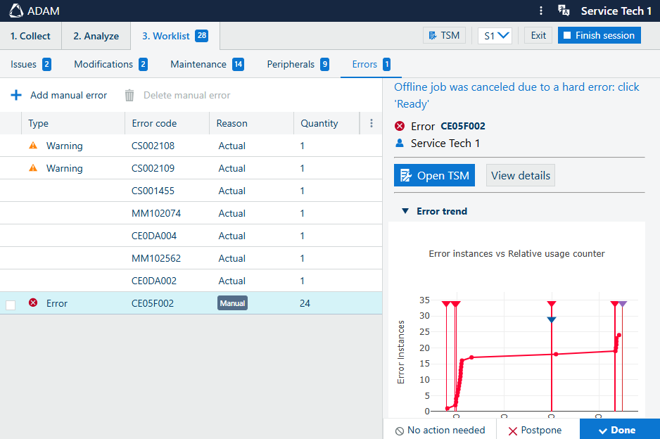 [Action] (can be one of [Done], [Postpone] or [No action needed] ) .