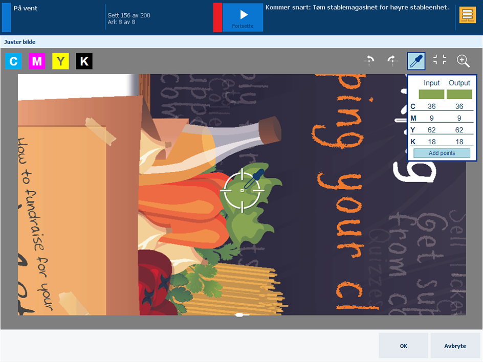 Bruk redigeringsprogrammet for CMYK-kurve hvis du vil justere utskriftstettheten for én eller flere CMYK-farger.