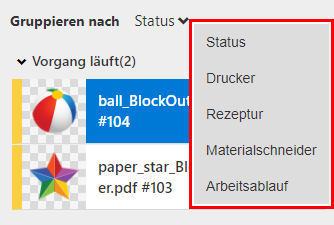 Sie können die Aufträge anhand der folgenden Kriterien gruppieren: