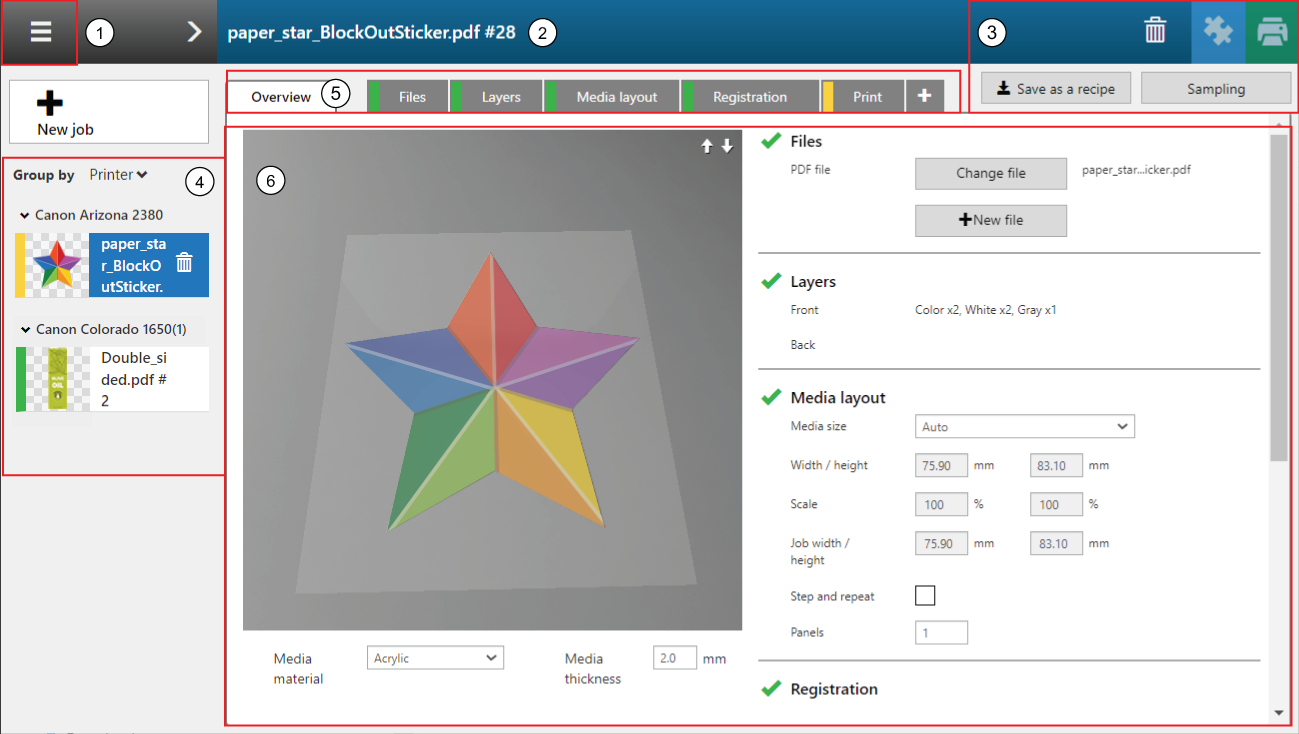 Zugriff auf die Registerkarten, um erweiterte Auftragseinstellungen festzulegen
