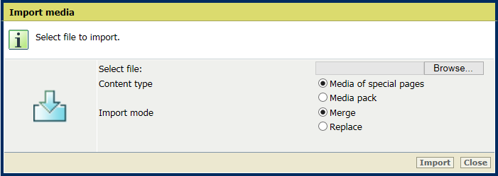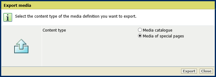 You can export an XML file with the current media definitions of the special pages. This XML file can be imported into another printer.