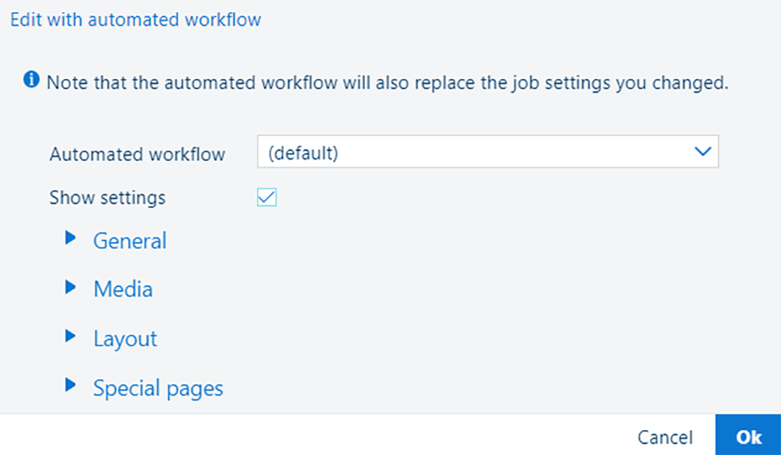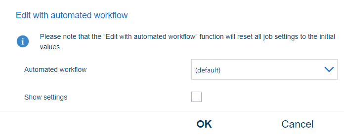 Please note that the [Edit with automated workflow] function will reset all job settings to the initial values.