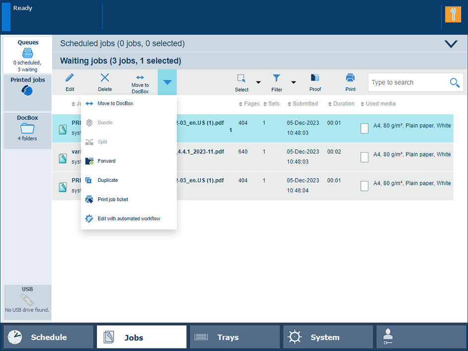 When a predefined automated workflow is chosen and overrule job ticket = enabled, the automated workflow settings have more priority. Example: ticket has media A3, automated workflow has media A4 => result Media A4