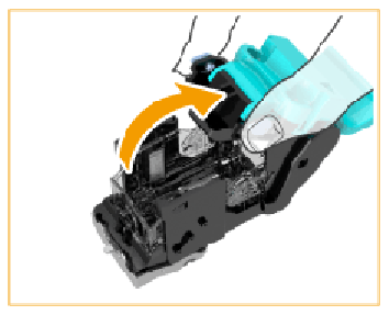 Paina vihkonidontayksikkö varovasti takaisin lajittelija/nitojaan niin pitkälle kuin mahdollista ja sulje sitten etukansi.