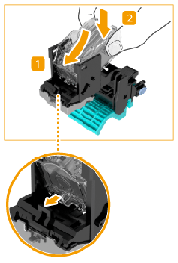 Helyezze be az új tűzőkapocs kazettát helyére kattanásig. Győződjön meg arról, hogy a tűzőkapocs-kazetta behelyezése megfelelő irányba történt. |