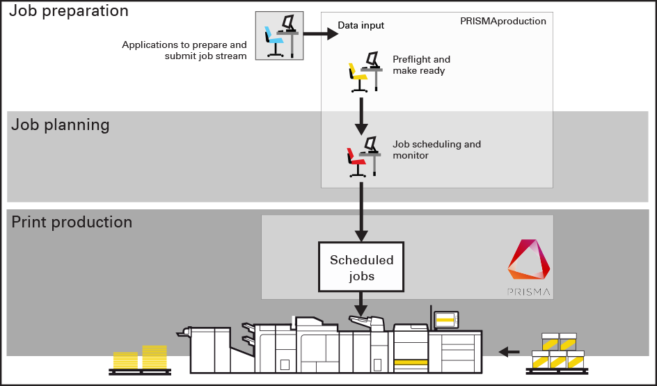 Job workflow for transaction printing modeDuring daily work, you can switch between the transaction printing and document printing modes without rebooting the print system.