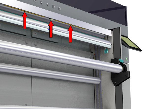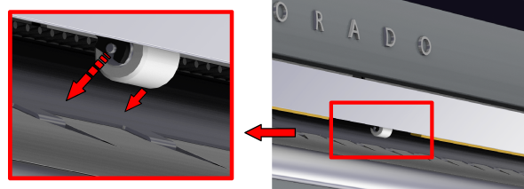 Přejděte k výstupní straně média a vyhledejte vodicí desku s montážním celkem válce a pěnových dílů.