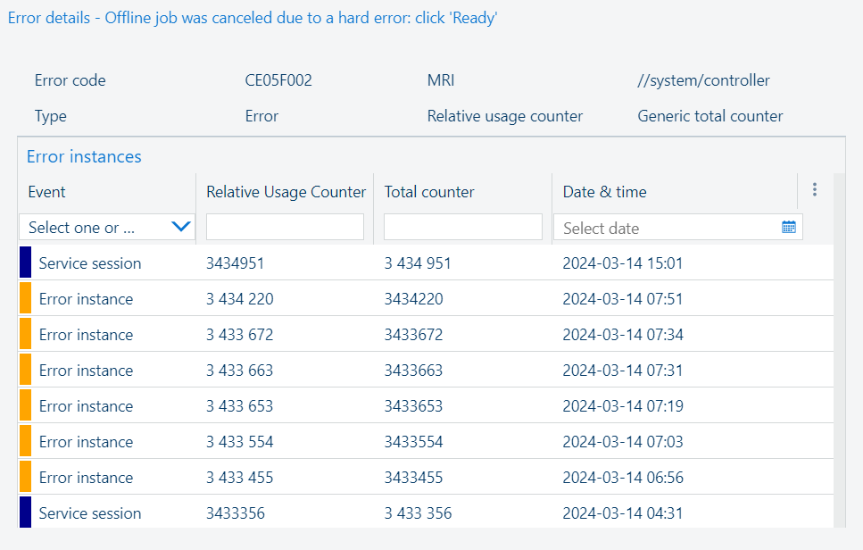 Type of error. Can be used in the filtering box to restrict the content of the list.