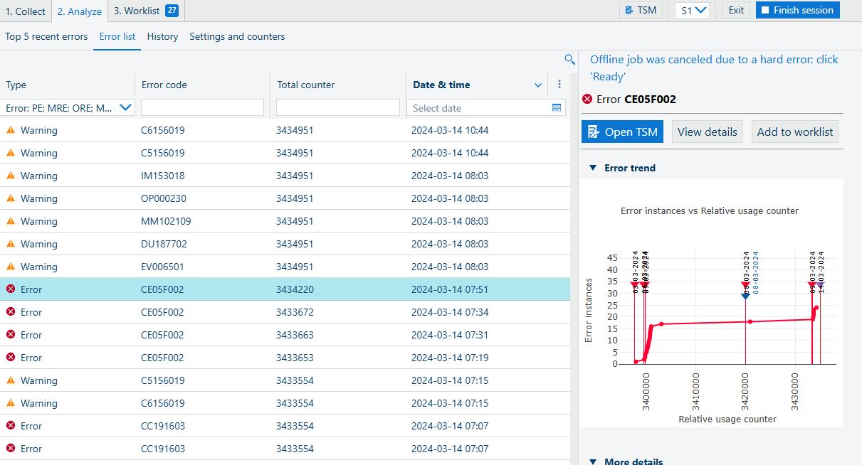 Use TSM at the end of the error/warning to open the TSM document that explains this error/warning.