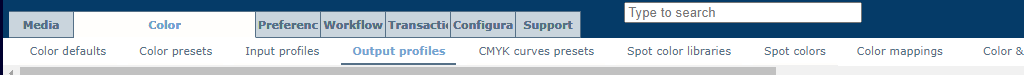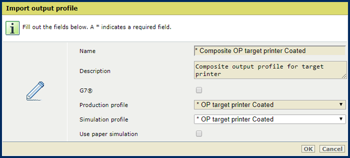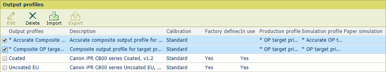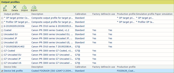 Output profiles tabSelect the output profile of the production printer.