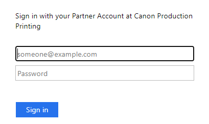 如果您以 Canon 合作伙伴身份登录,您将被重定向到合作伙伴登录页面。输入您的电子邮件和密码。