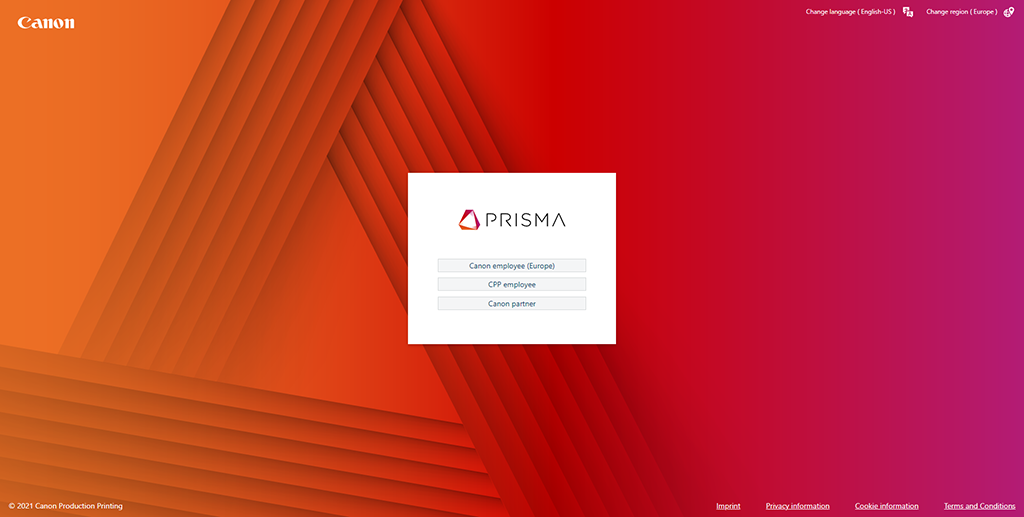 在您的首选浏览器中导航到 PRISMAservice 的网站:prismaservice.cpp.canon/。
