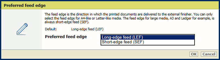 [Error recovery method] settingUse the [Preferred feed edge] setting to indicate the default feed direction of the sheets to the external finisher.