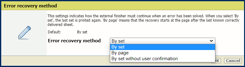 [External finisher] sectionUse the [Error recovery method] setting to define how to continue when an error occurs.