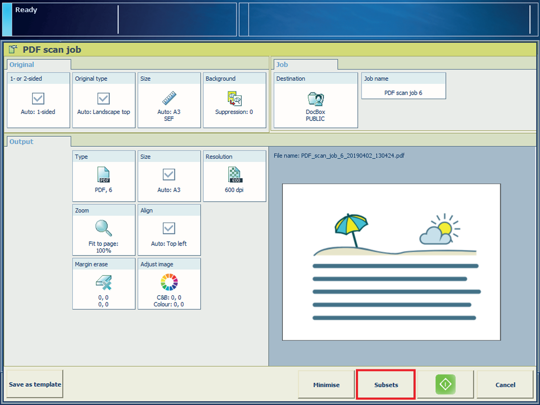 Różne podzestawy oryginałów można łączyć w plik skanowania.
