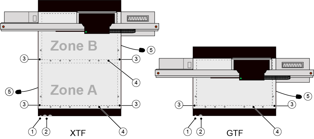 Referentne točke Za svaku zonu postoje lijeva i desna referentna točka i predstavljaju točku 0,0. Referentne točke dio su stolnih ravnala koje se ispisuju izravno na stolu. |