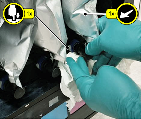 Kol maišelis vėl bus prijungtas, nepūkuotą šluostę laikykite vietoje.