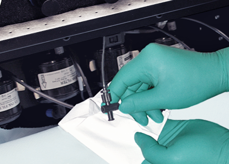 Jei kyla rizika paliesti rašalą ar priežiūros medžiagas, užsimaukite pirštines. Pirštinės turi visada uždengti rankogalius. Kruopščiai vadovaukitės rašalui skirtuose saugos duomenų lapuose (SDL) pateiktomis rekomendacijomis, kurios padės užtikrinti didžiausią saugą. Pavyzdžiui, naudokite „Ansell Microflex“ 93-260 pirštines, kurios apsaugo nuo UV rašalo ir plovimo medžiagos iki vienos valandos. Užteršimas kitais chemikalais gali sumažinti apsaugos nuo UV rašalo ar plovimo medžiagos trukmę.