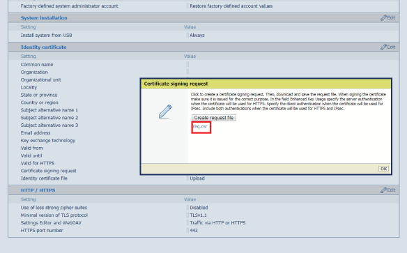 Para ativar a utilização de HTTPS tem de instalar um certificado de identidade válido no controlador. Para tal, tem de: