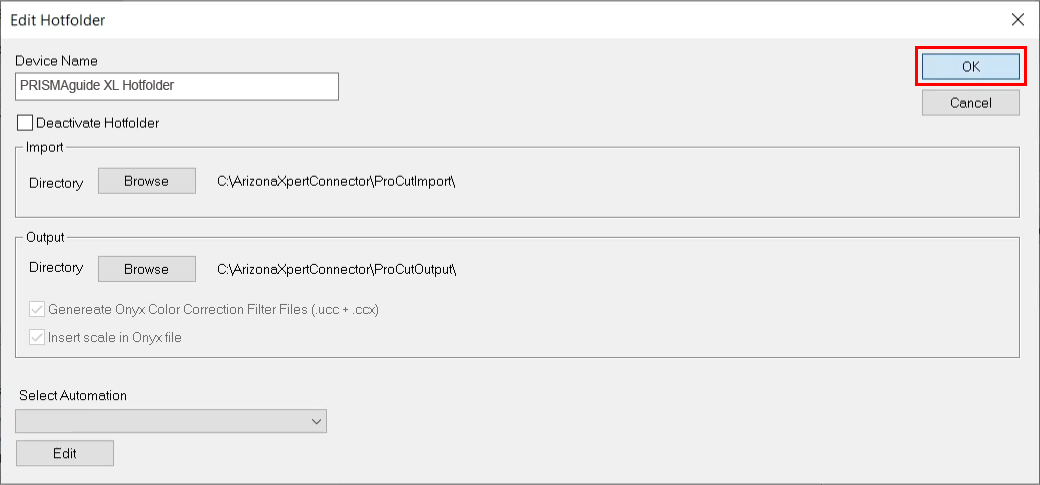 Konfigurieren eines Hot Folder für die Interaktion mit PRISMAguide XL Engine