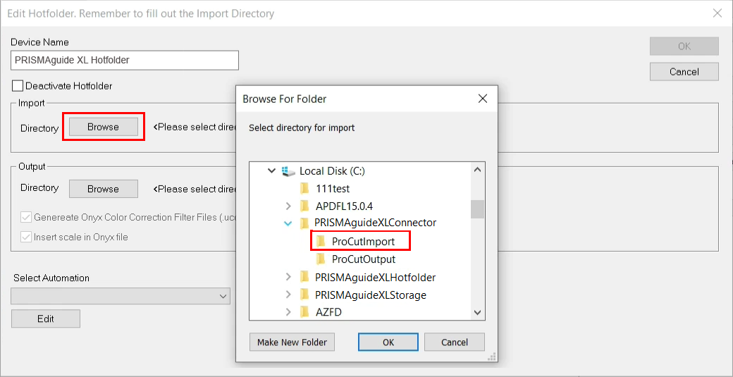 Der Hot Folder dient zum Austausch von Dateien zwischen ProCut und PRISMAguide XL Engine