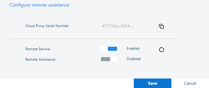 El [Número de serie] del Cloud Proxy se muestra en este diálogo.