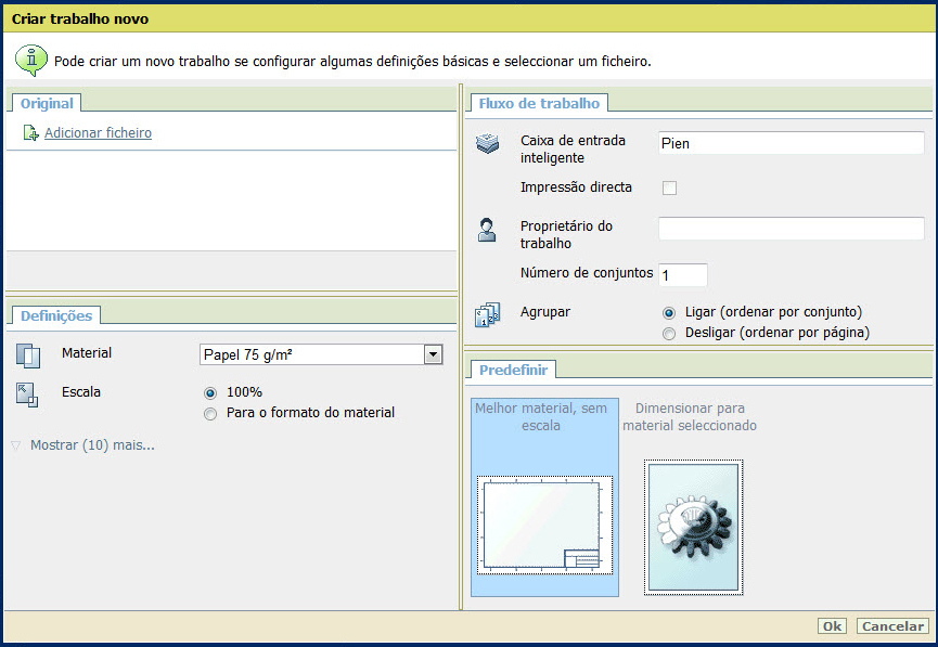 Clique em [Ok] para enviar o trabalho de impressão para a impressora através da Smart Inbox nova. |